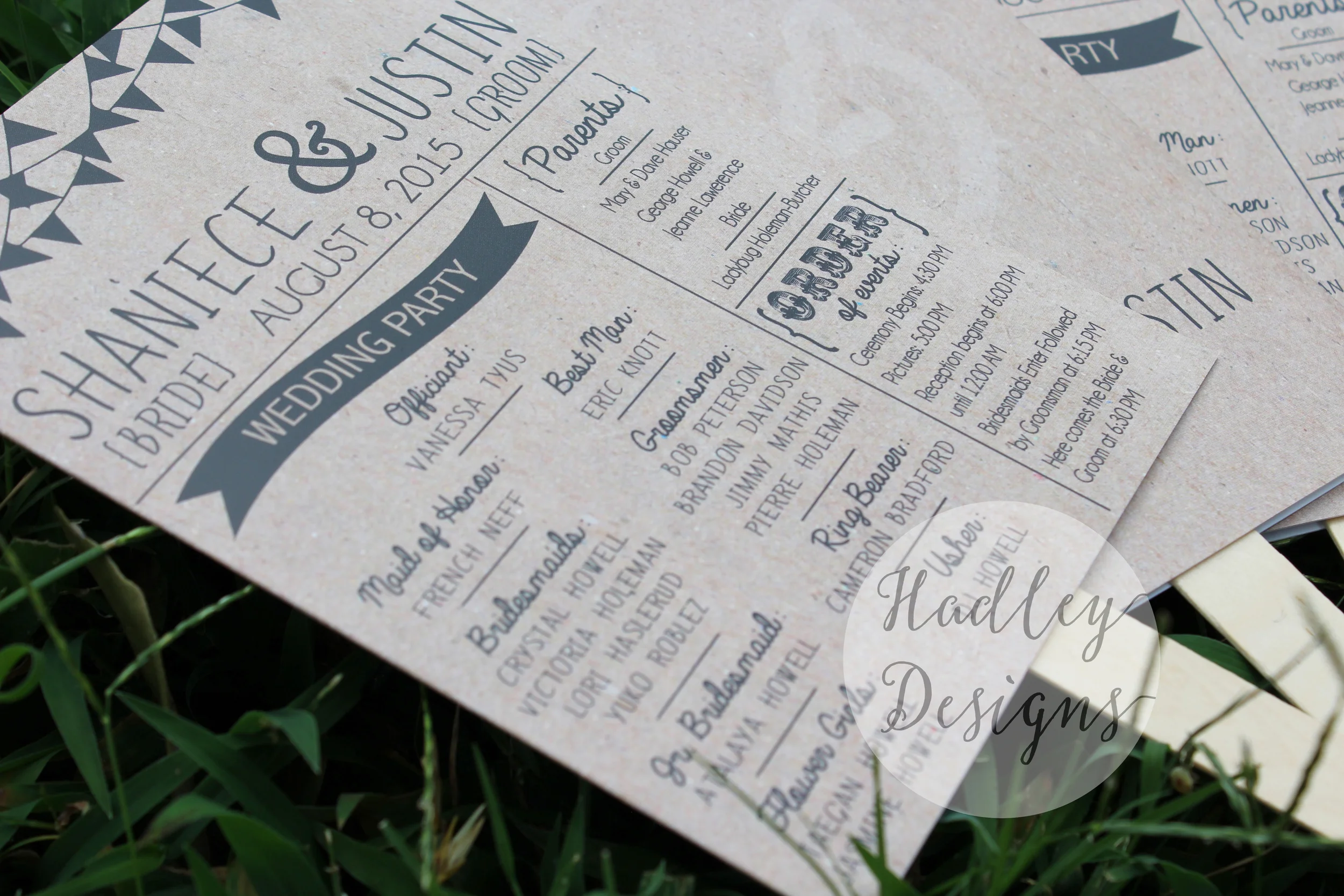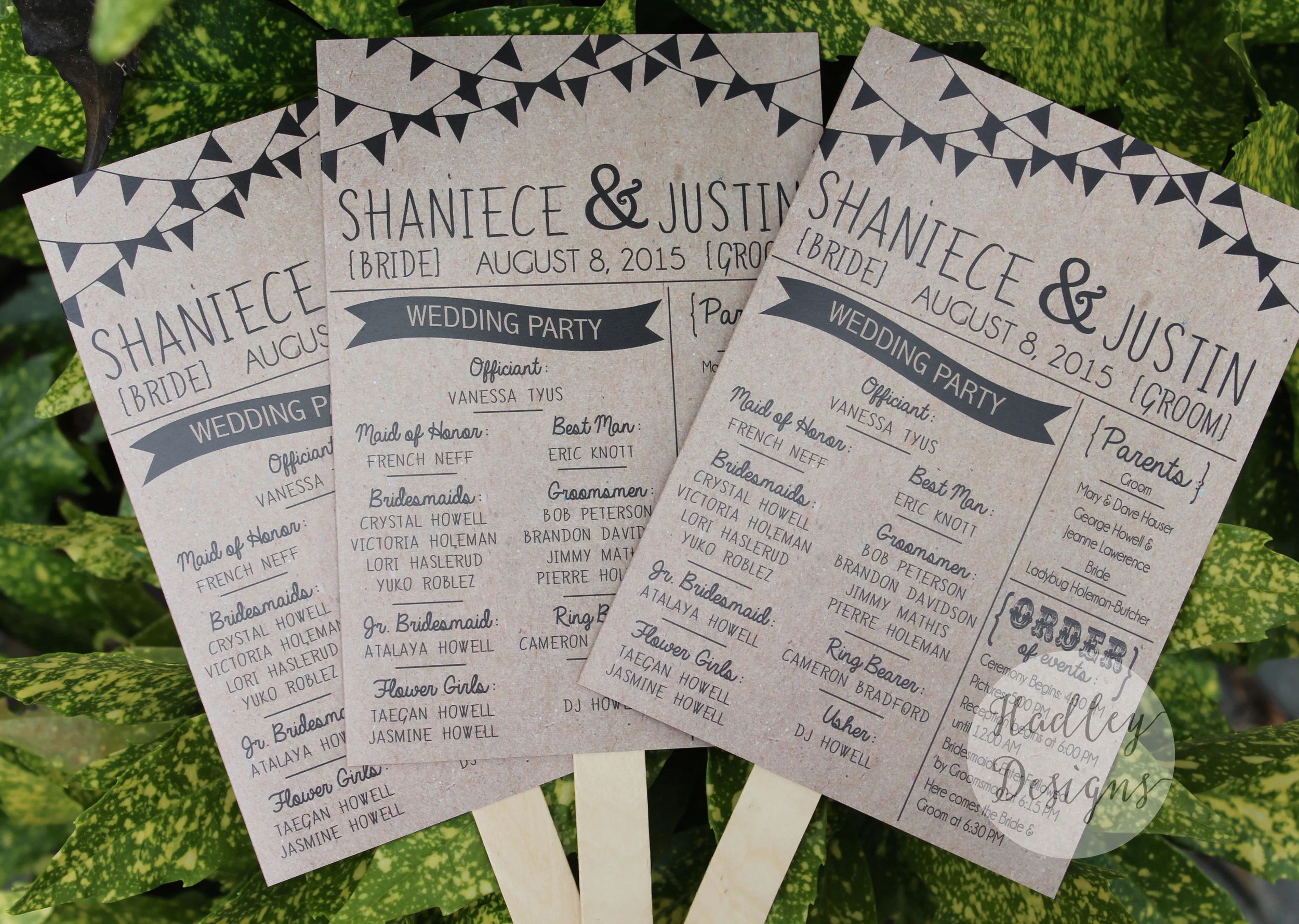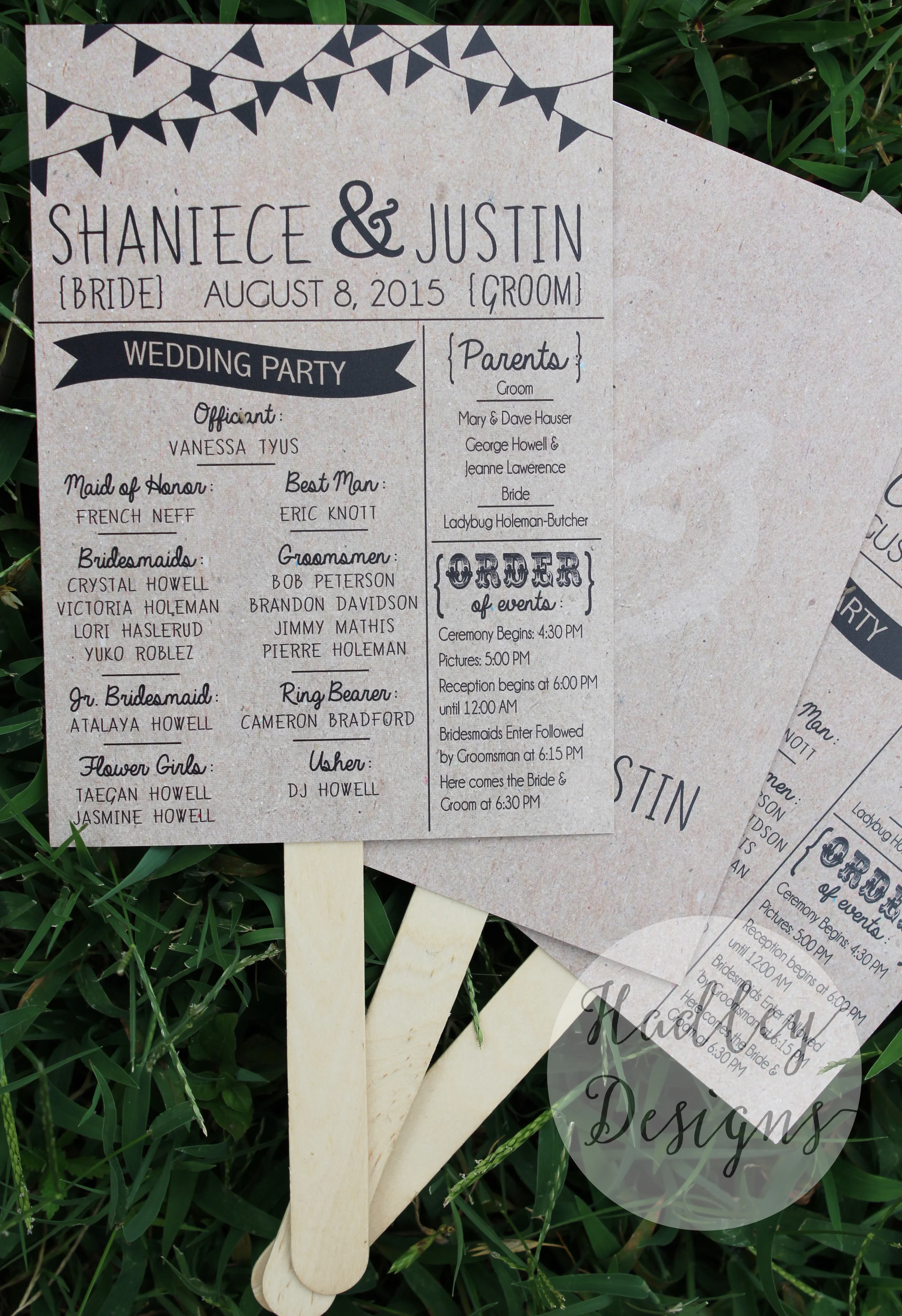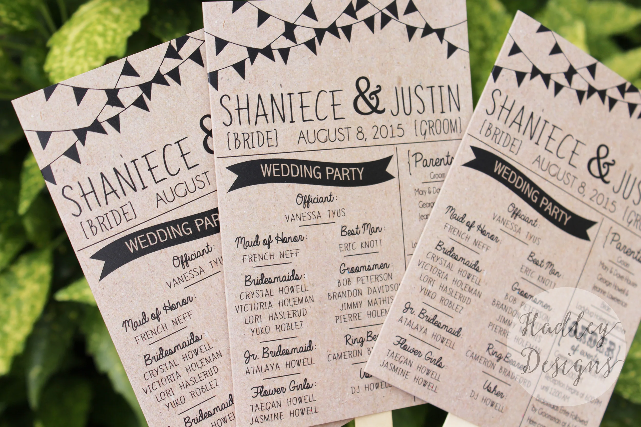 Any brides out there gearing up for a summer wedding this year? Do your guests a HUGE favor by turning your programs into fans to keep your guests cool under the summer sun! They're the perfect way to make your wedding enjoyable despite the heat! Check out these adorable kraft fan wedding programs for the soon to be Mr. & Mrs. Holeman!
