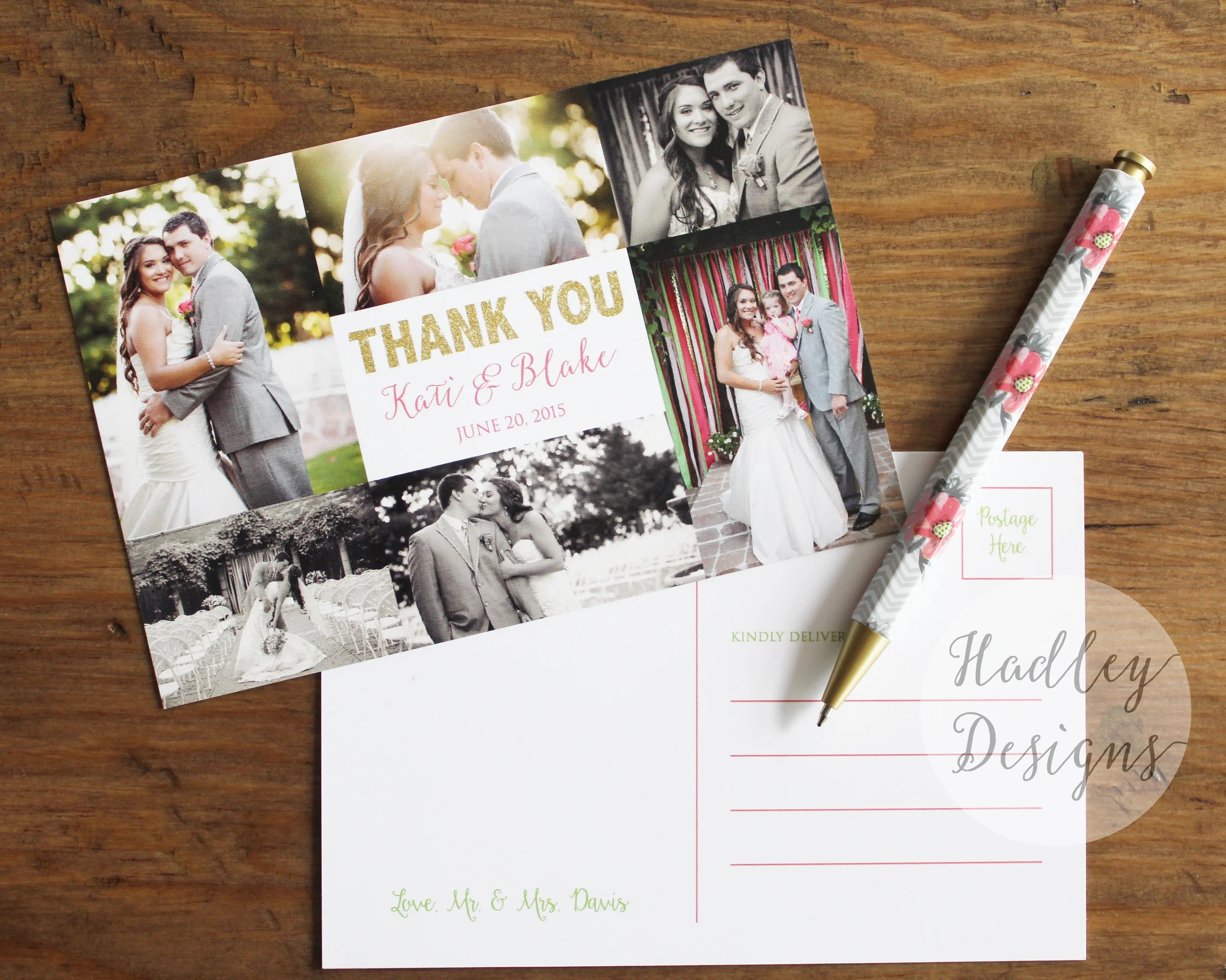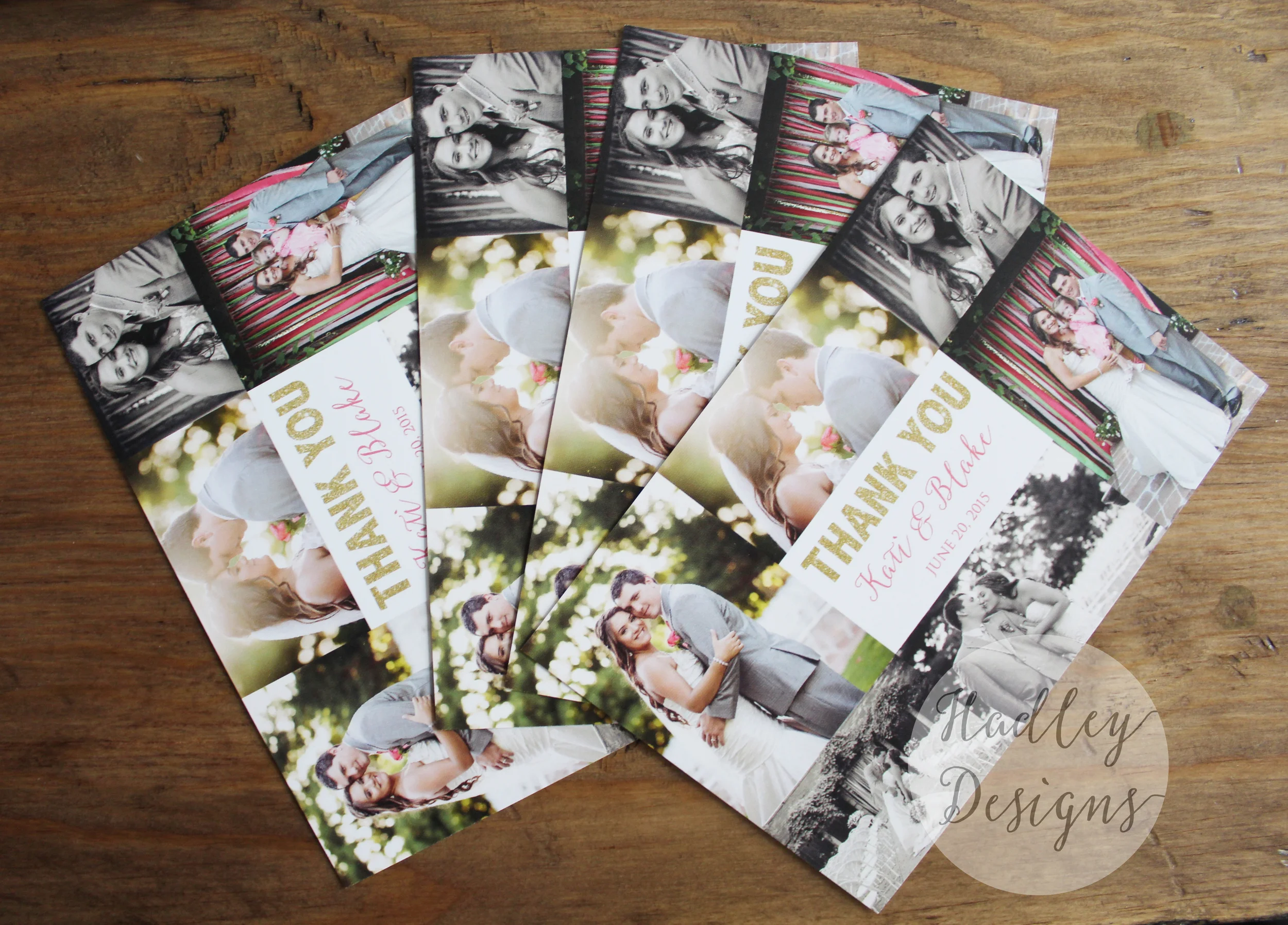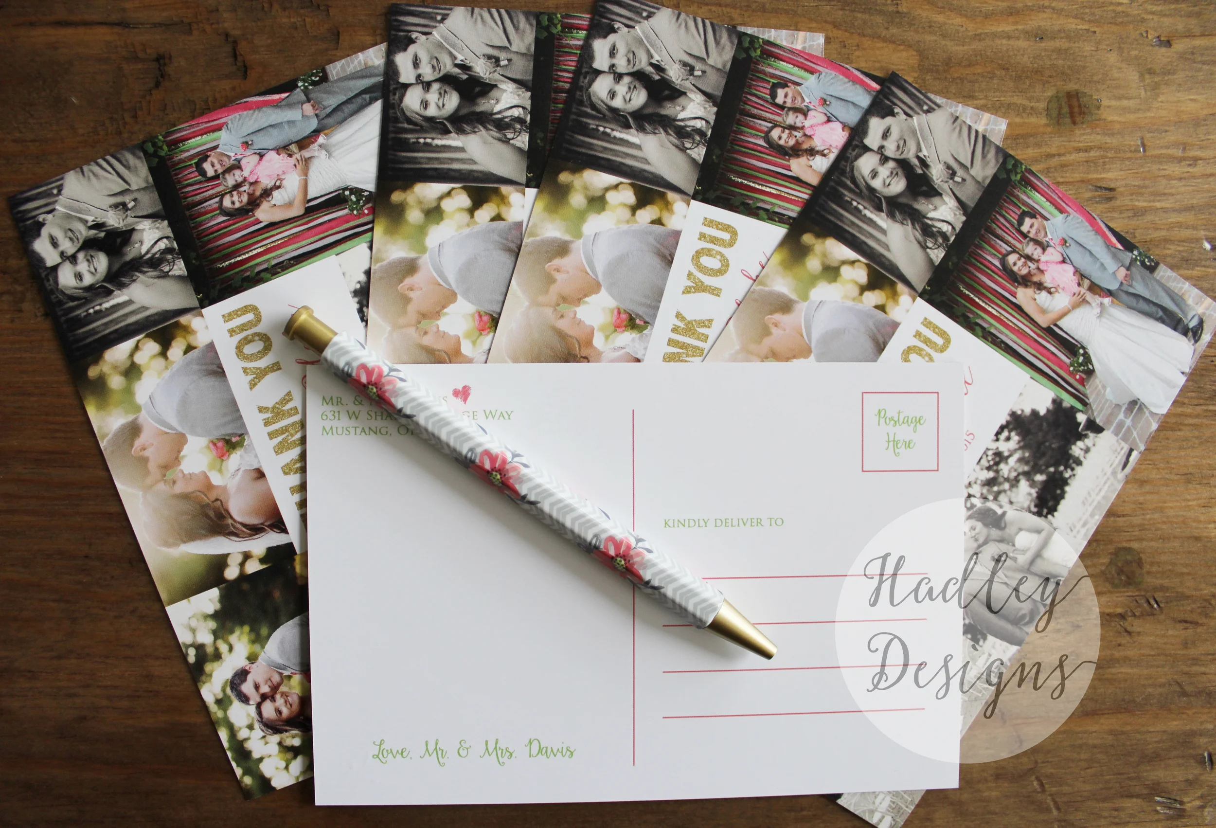 Looking for a great way to show off all those GORGEOUS wedding photos?! You want your friends and family to see them don't you? Order your completely custom postcard thank you's today! Remember it's extremely important to show gratitude to your guests and this is the perfect way to write them a little thank you for their gift and for being a part of your big day! Thank you cards should be sent out no later than 6-8 weeks after your wedding.